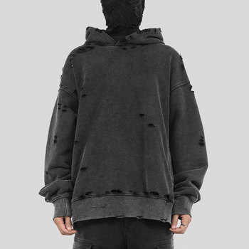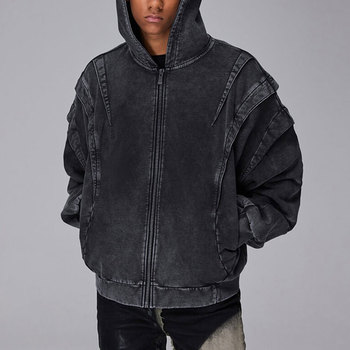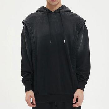 חומצה לשטוף קפוצ 'ון באיכות גבוהה 100% ריק כותנה בתוספת גודל סגנון רחוב בסגנון יתר גדול יותר בשכבה כפולה שרוול וינטג' קפוצ 'ון