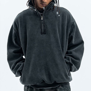 Oversized Hoodie Wholesale Heavy Weight 420Gsm Vintage Hoodie Custom logo High Quality Streetwear Acid Wash Quarter Zip Pullover